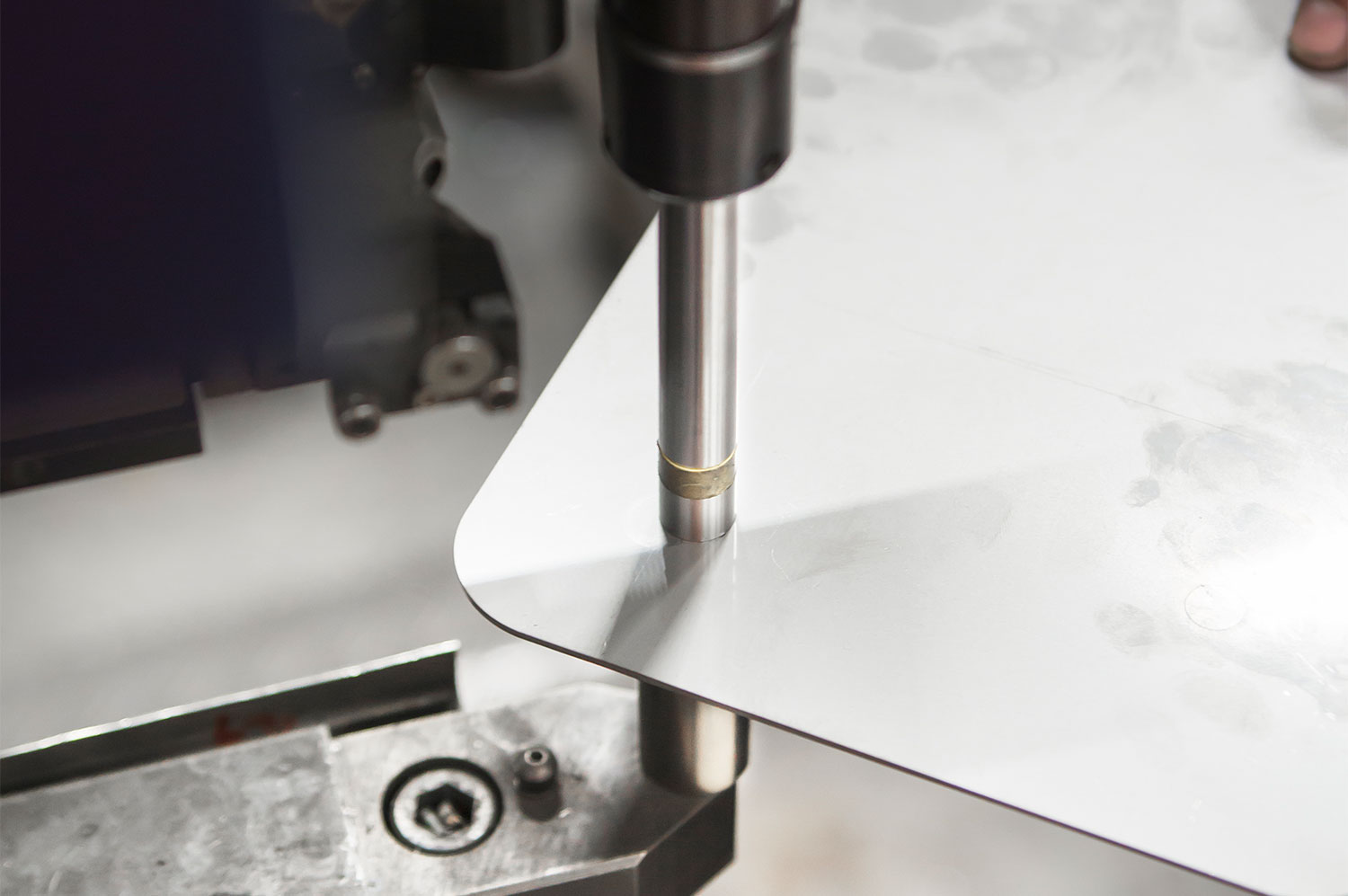 Many Baas Metaal customers choose pressing as a more attractive option than welding nuts and bolts. Fastening material is applied fully automatically to the thinnest sheet materials, which are also finished waterproof. After pressing, the number of follow-up treatments decreases on average, such as during subsequent coupling, which leads to cost savings.